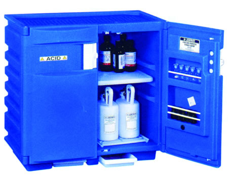 一體(tǐ)式无缝聚乙烯安全柜為(wèi)危险的酸和腐蚀性物(wù)质提供大限度的防护。